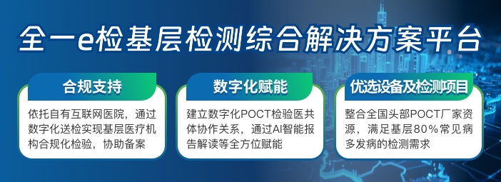 Leveraging our proprietary internet hospital, Quanyi E-Test has completed the integration of resources from leading POCT manufacturers nationwide, covering multiple testing categories including hematology, immunology, biochemistry, and electrocardiography. With superior quality control and more accurate data, results are available in 3–15 minutes, meeting the testing needs for 80% of common and frequently-occurring diseases at the primary care level.